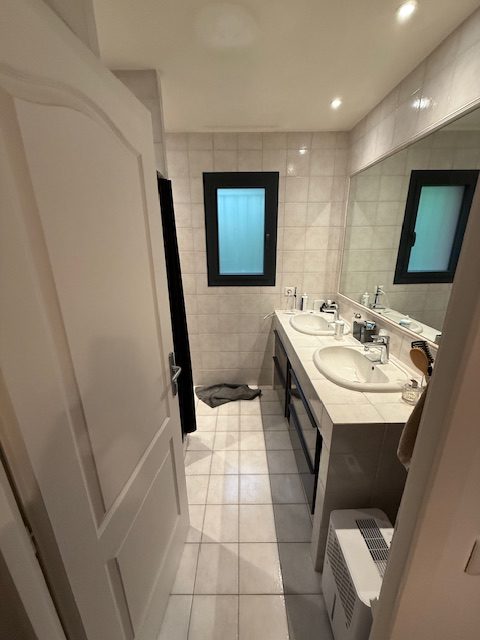 Dans cette maison, la salle de bain d’origine était fonctionnelle mais datée. Carrelages anciens, espace peu optimisé et éléments techniques vieillissants : il était temps d’apporter confort, modernité et durabilité.