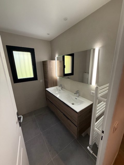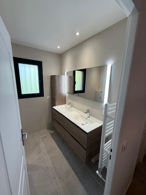 • Installation d’un meuble double vasque avec rangements intégrés