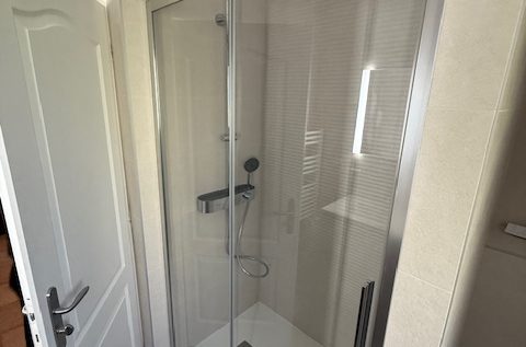 • Création d’une douche spacieuse avec paroi vitrée moderne
